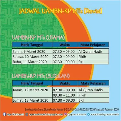 Revisi Jadwal UAMBN-KP Madrasah Tsanawiyah Tahun Pelajaran 2019/2020